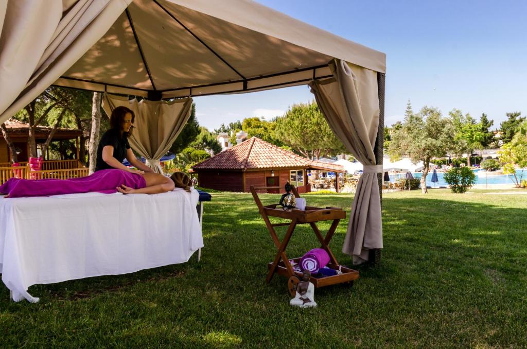 Alfagar Aparthotel se află intr-o locație de invidiat, cu vedere la ocean, oferind o vedere panoramică memorabilă la litoral. Sunt disponibile apartamente cu 1 sau 2 dormitoare și pot avea vedere la mare sau la grădină. Noile unități "Prestige" oferă decor nou și modern. Restaurantul Oliveira pune la dispoziție bufet și o terasă cu vedere la piscină. La barul proprietății, oaspeții pot gusta o gamă largă de băuturi și pot urmări principalele evenimente sportive. In plus, oaspeții se pot bucura de celelalte 3 restaurante și baruri ale celorlalte proprietăți Alfagar din apropiere. Accesul la plaja Santa Eulália este privat și se face pe trepte. La cațiva kilometri există și alte plaje frumoase cu nisip. Alfagar Aparthotel este inconjurat de grădini frumoase, cu o suprafață totală de 11 hectare, care se extind pană la satul Alfagar. Terenul de golf Balaia se află la 1 km.